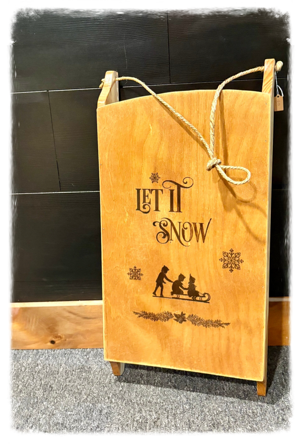 Joli traîneau fabriqué à la main, gravé au laser. 11''x23''