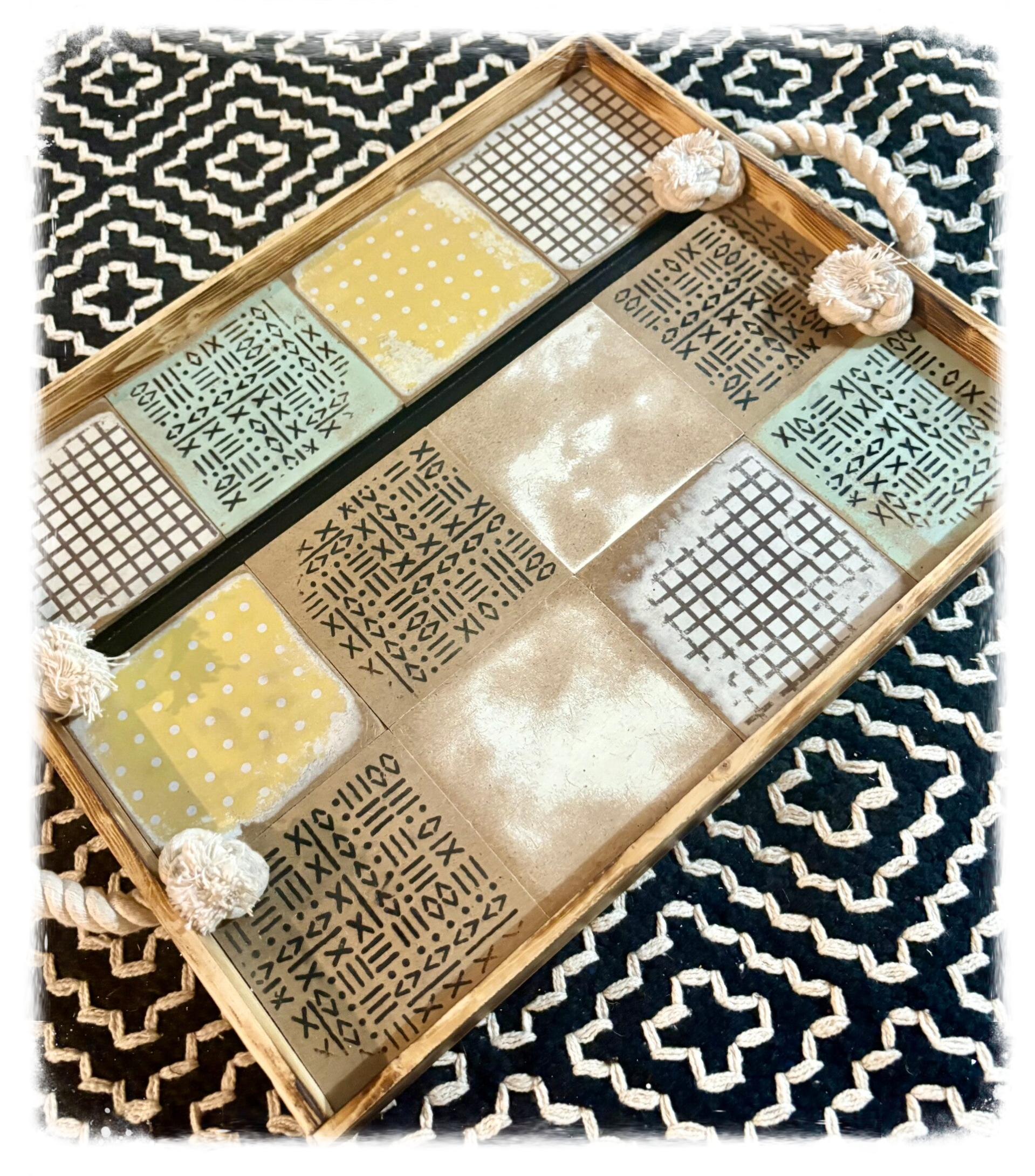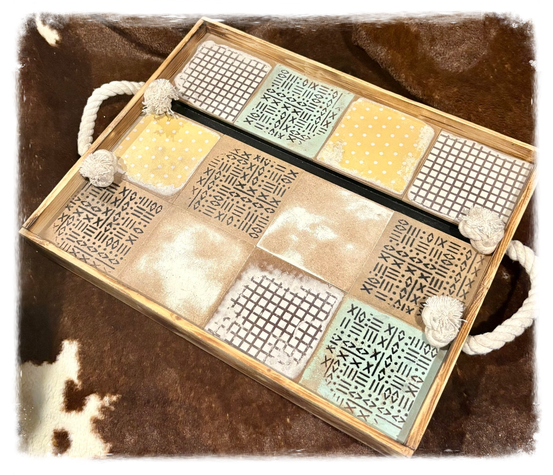 Joli plateau de bois fabriqué et peint à la main, gravé au laser. 11''x 14''