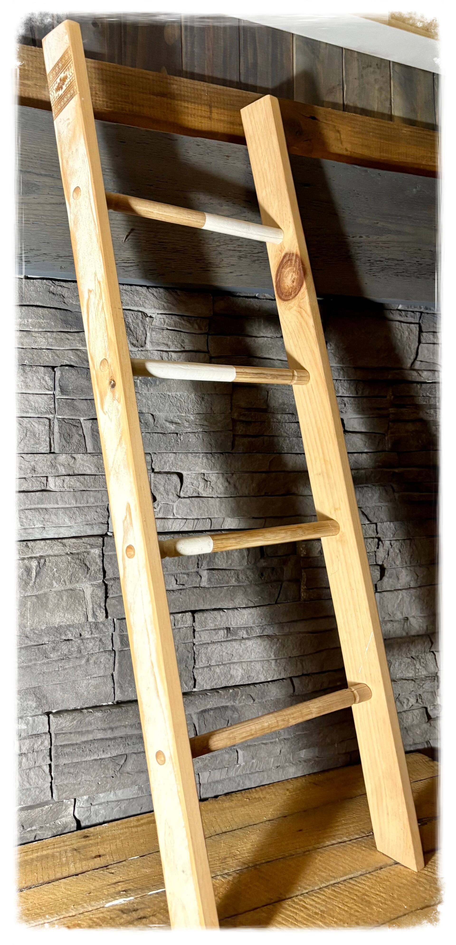 Belle petite échelle décorative an bois, gravée au laser. Suspendre pour y accrocher des plantes, accrocher au mur et intégrer des cadres ou seulement déposer au mur pour mettre des serviettes.